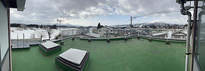 屋上融雪は終わりましたが、屋上はこんな感じです。昨日サラッと雪が降りましたが、融けてしまいましたね。
