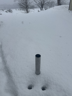 融雪炭を撒いた後にこの雪では、撒いた融雪炭が雪に隠れて融雪効果など無くなる。再度 撒き直しをしないといけない。