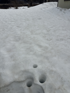 手前右の穴が前回(3月11日)、手前左の穴が先週(3月8日)のサンプル採取穴です。