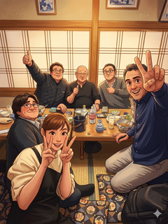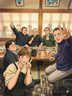 先日(3/19)、北海道の青木さんと飲んだ時の写真ですが、時代劇風・原始時代風・ロック風、簡単に加工出来るんですね。