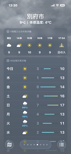 旅行で重要なのは、現地の天気です。 それと、足はスニーカーで大丈夫か? 大分での移動はレンタカーなのだが、 |