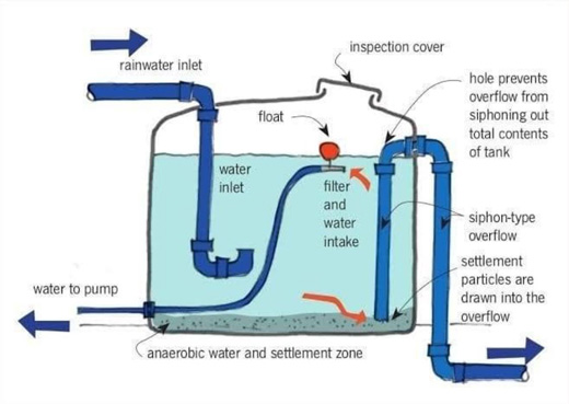 雨水タンクの構造(配管)は、ネットで拾って来た参考図、こんな感じで考えています。