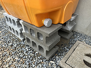 2段(2枚)のブロックはコンクリートボンドで接着して一体化させました。後は雨水タンクを載せるだけの状態です。