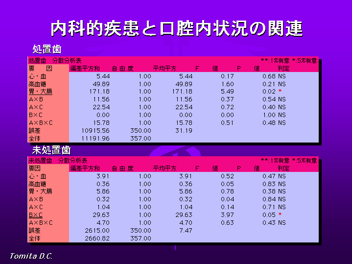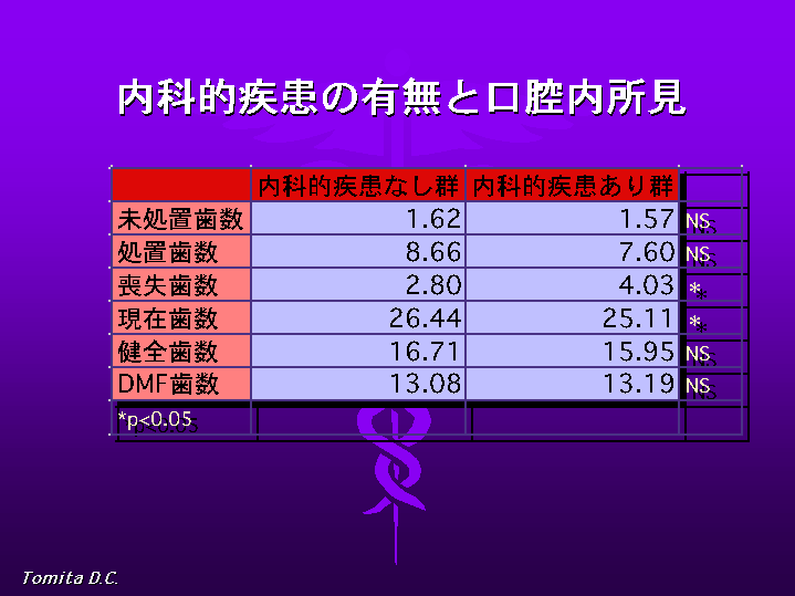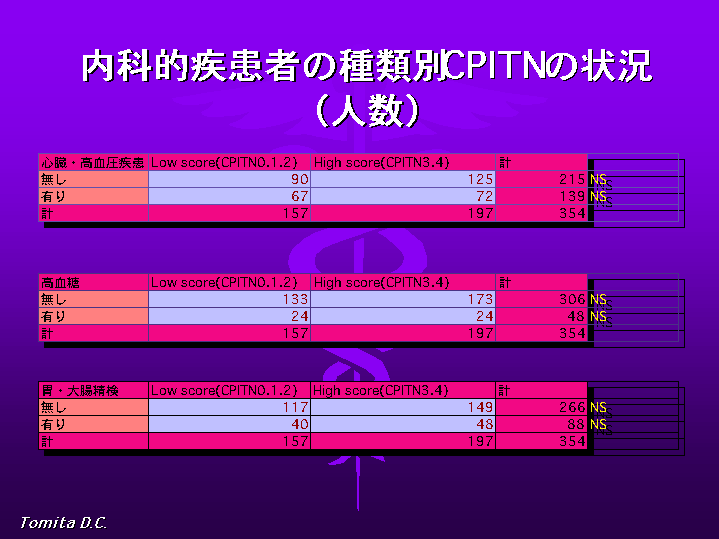 CPITNについては内科的疾患の有無との関連は、すべての疾患群で見られませんでした。